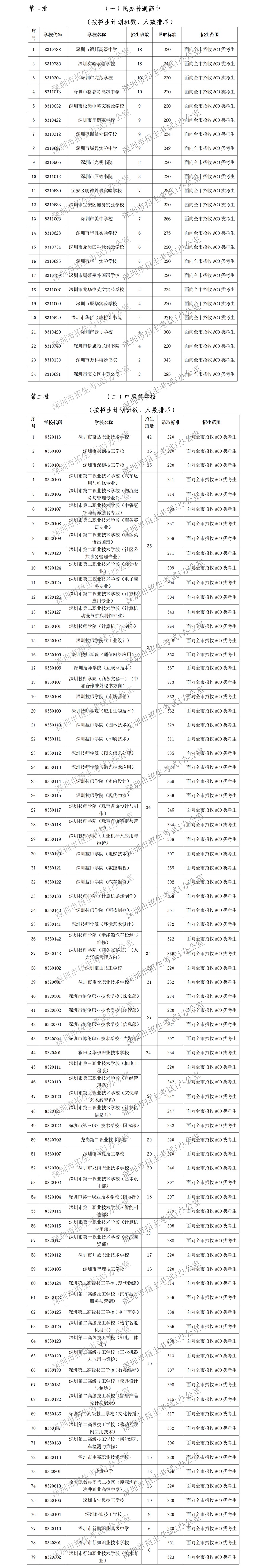 附件:深圳市2018年高中阶段学校第二批录取标准